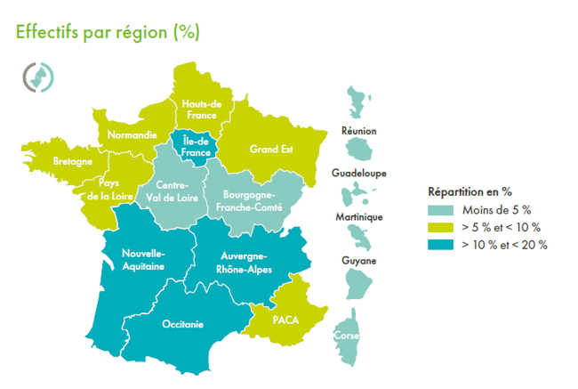 - La Nouvelle-Aquitaine occupe la troisième place en nombre de salariés (11,1 %).