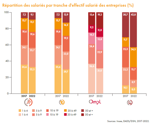 75,8 % des salariés de la branche travaillent dans une entreprise de moins de 20 salariés.