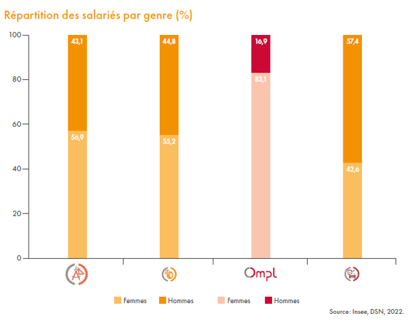 Les emplois de la branche sont principalement féminins : 56,9 % des salariés sont des femmes.