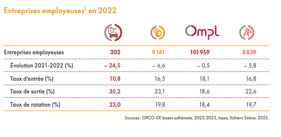 En outre, la part sectorielle d’entreprises formatrices (35,7 %) est moins importante de celle de la branche (– 24,9 points).
