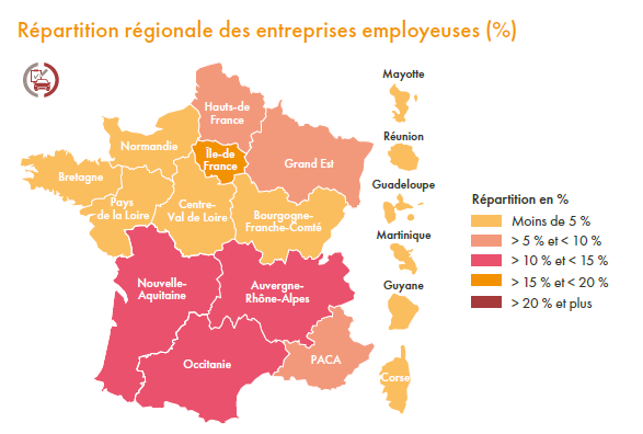 • L’Auvergne-Rhône-Alpes occupe la troisième place en nombre d’entreprises (12,6 %).