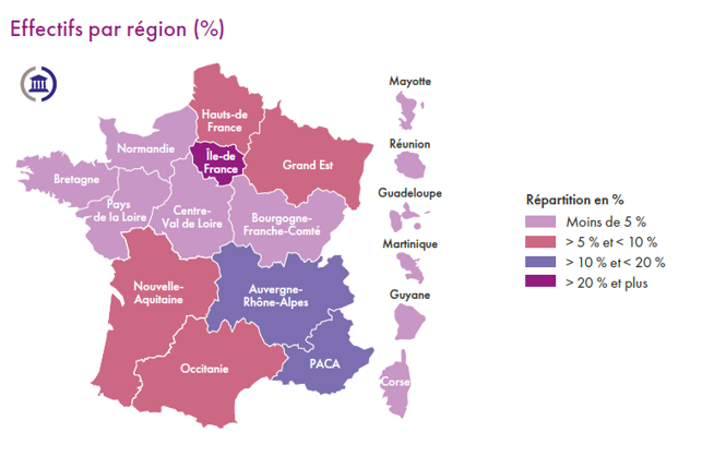 - La région Auvergne-Rhône-Alpes est la seconde région pour l’emploi de la branche (11,8 %) ;