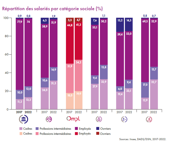 - Le taux d’employés est très important et supérieur à celui du secteur (74 % contre 51,9%) ;