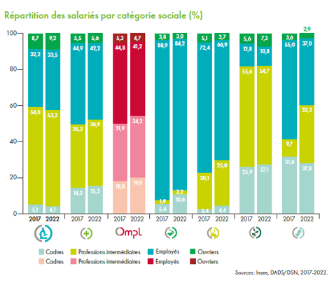 - Le taux d’employés est largement inférieur à celui du secteur (33,5 % contre 42,2 %).