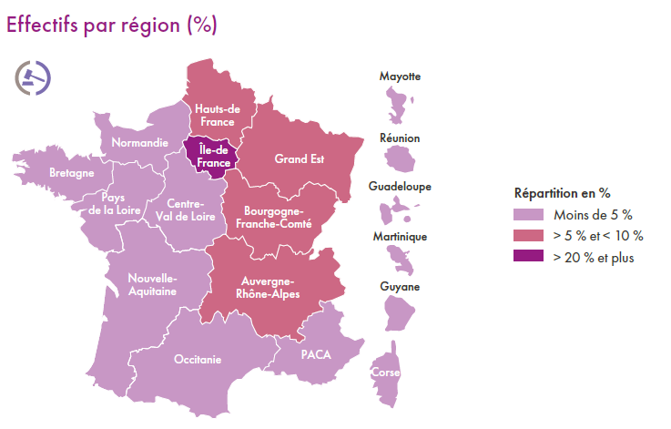 - Le Grand Est occupe la troisième place en nombre de salariés (7,1 %). ;