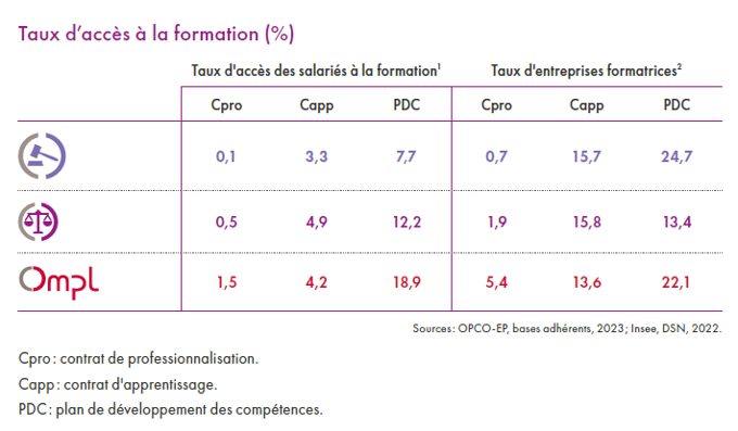 Par rapport à la branche, l’accès à la formation professionnelle au niveau du secteur est aussi déséquilibré. 8,9 % des actions de formation réalisées dans le champ de l’OMPL sont issues du secteur qui regroupe 12,5 % des salariés.