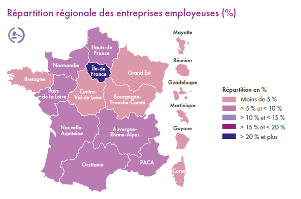 Ces trois régions regroupent 48 % des entreprises employeuses de la branche et 50 % du volume d’entreprises sectoriel.
