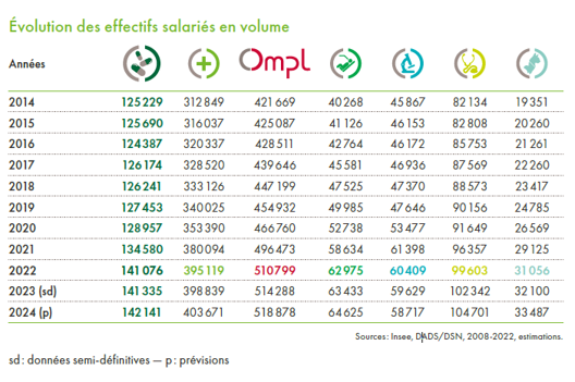 Par rapport à 2014, la branche enregistre une progression (+ 12,7 %) de ses effectifs salariés en 2022.