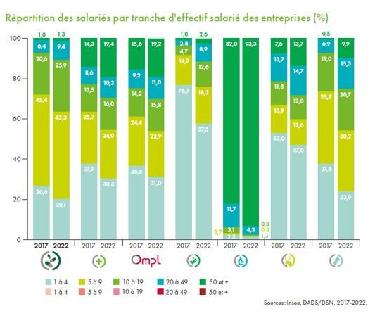 entreprise de moins de 20 salariés. Par rapport à 2017, cette part a reculé (– 3,3 points) au profit des entreprises de plus grande taille.