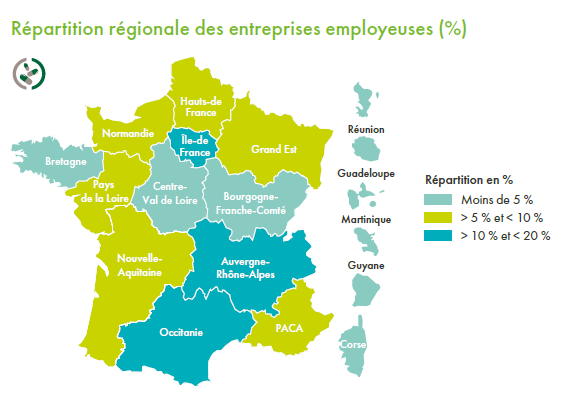 - L'Occitanie occupe la troisième place en nombre de salariés (10.2 %).