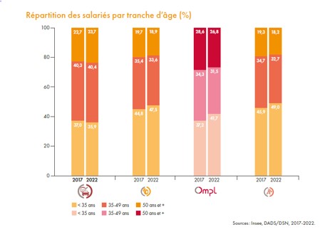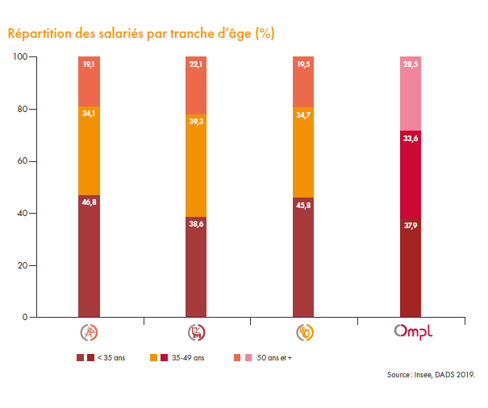 âgés de moins de 35 ans est la plus importante (45,8 %). Les salariés âgés de 50 ans et plus représentent moins du inquième des actifs.