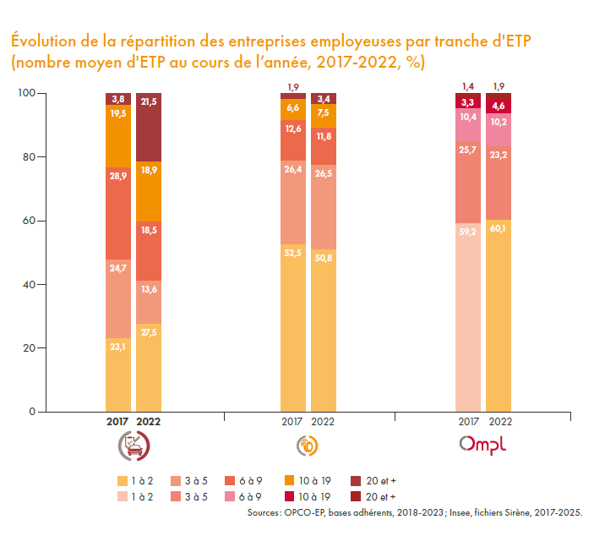 Avec plus de 9 000 entreprises et plus de 51 000 salariés en 2022 (données INSEE), le secteur du cadre de vie représente 9 % des entreprises et près de 13 % des salariés des entreprises libérales du périmètre de l’OMPL. Elles emploient en moyenne 5,7 salariés.